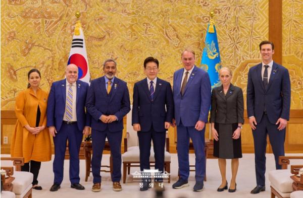 이 대통령과 미 대표단은 최근 중동 전쟁과 그 파급효과에 대해 의견을 교환하고, 한미동맹을 토대로 역내 평화·안정이 공고히 유지되어야 함은 물론 에너지 공급망을 비롯한 글로벌 경제가 조속히 안정되어야 한다는 점에 공감했다.