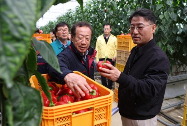 [산보배인사이트] 박정훈 농림축산식품부 식량정책실장은 4월 7일 최근 중동 상황에 따른 국제유가 상승과 농자재 가격 상승으로 어려움을 겪고 있는 경기도 고양시 소재 파프리카 시설원예 농가를 방문하여 생육상황과 영농 여건을 직접 점검하고 현장 애로사항을 청취했다.