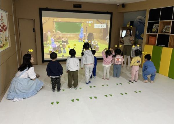도서관 1층 체험형 동화구연실에서는 매 회차마다 동화 속 세상이 펼쳐지고, 아이들은 이야기를 ‘듣는 사람’이 아닌 ‘주인공’이 되어 그 안으로 들어간다. 대형 스크린에 구현된 생생한 장면 속에서 아이들은 몸을 움직이며 이야기의 흐름을 따라가고, 친구들과 함께 역할을 나누며 자연스럽게 이야기를 완성해 나간다.
