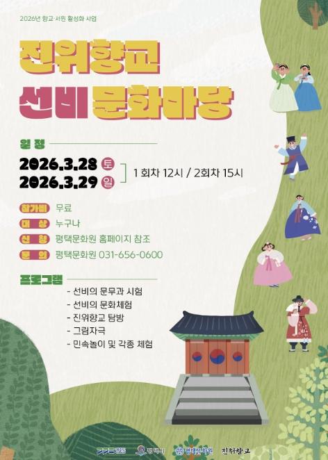 오중근 평택문화원장은 “진위향교 선비문화마당은 지역의 소중한 문화유산인 진위향교를 시민들과 함께 향유하는 자리”라며, “전통과 재미를 함께 담은 이번 행사를 통해 많은 분들이 진위향교를 더욱 가깝게 느끼는 계기가 되길 바란다”고 말했다.