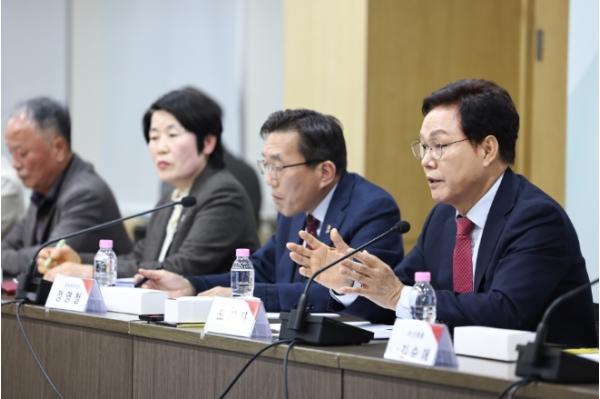 경남도는 24일 오후 도청 도정회의실에서 도내 문화예술단체 대표 30여 명과 함께 ‘문화예술단체 간담회’를 가졌다. 박완수 도지사는 이날 간담회를 주재하며, 도정 운영의 핵심 가치로 ‘현장 중심의 문화예술 지원’을 강조했다.